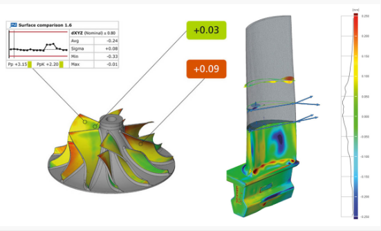 針對異形曲面,昆山源測工業技術有限公司的gom atos掃描設備充分發揮了它的檢測優勢,全面的反應產品的加工差異,為后續的工藝改進提供有效的實際數據。